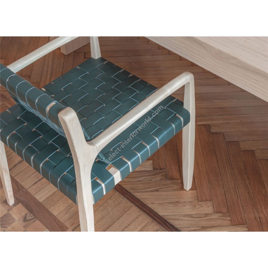 Back and seat in woven cuoio available in 4 colours: naturale, terra, forest, bianco.