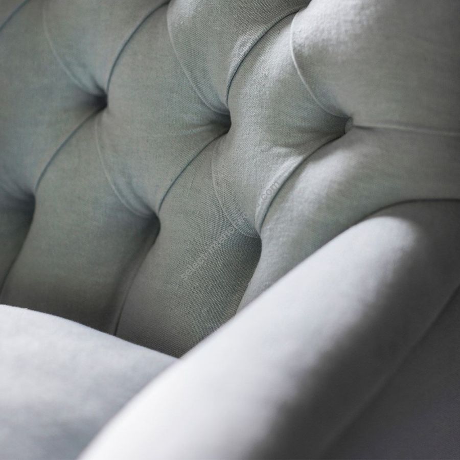 Designed with feminine lines, this is a perfectly proportioned Victorian-style button-back chair: small and compact with a soft, comfortable seat. Available with an ottoman and as a sofa.