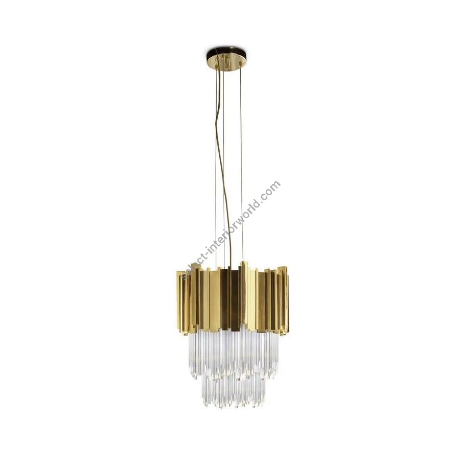 The Empire II Small Pendant Lamp is a refined blend of crystal elegance and golden sophistication. Featuring luxurious gold-plated brass and handcrafted crystal glass, this pendant is more than lighting — it’s a sculptural statement. Perfect for residential or hospitality interiors that demand timeless beauty in a compact form.