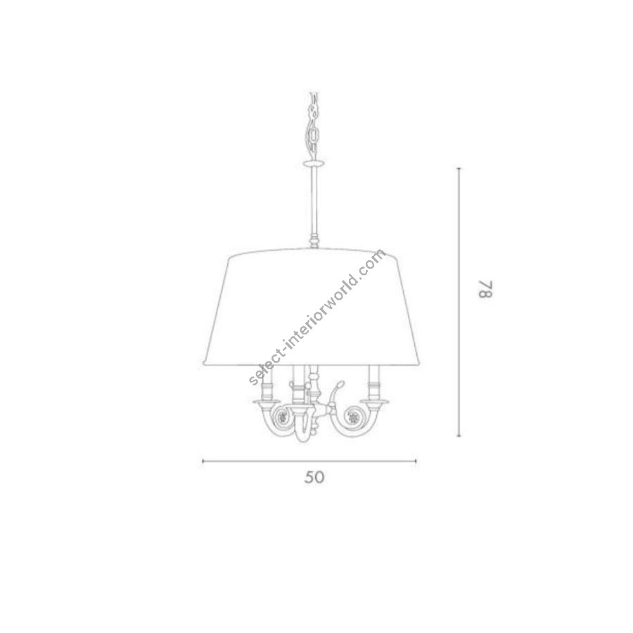 Chandelier with 3 lights in brass. Fabric lampshade.
