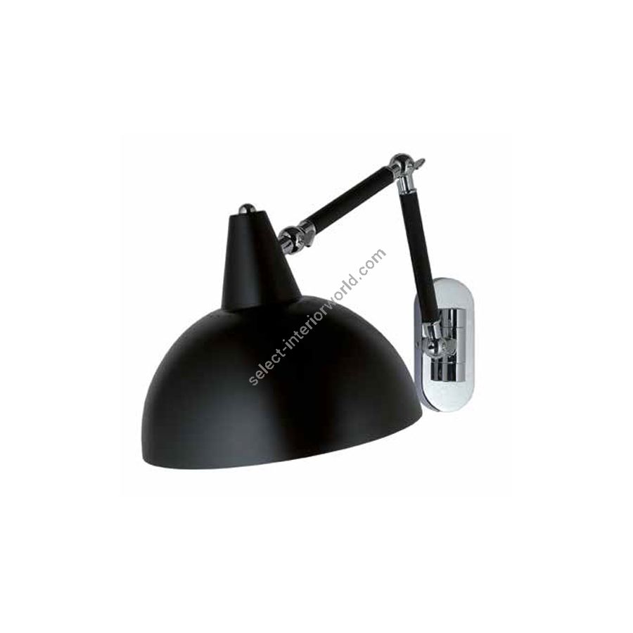 Wall lamp with adjustable arm in three parts and leather particulars. Structure in brass with black painted metal shade.