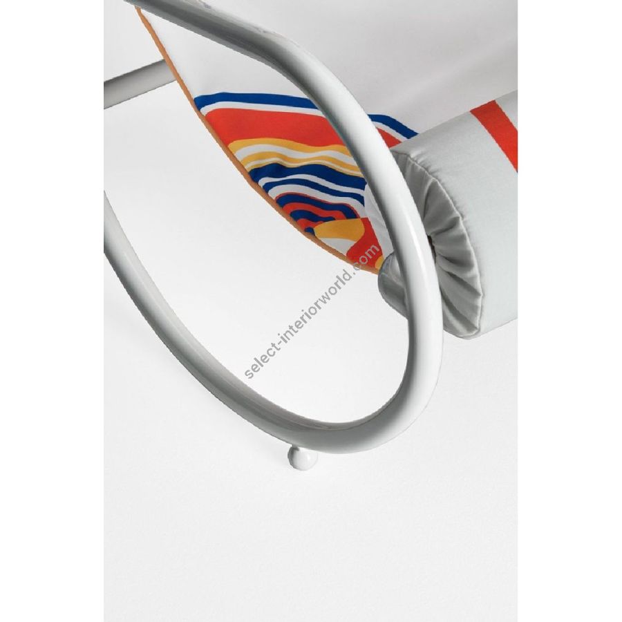 Due morbidi tubolari imbottiti avvolgono la seduta di Locus Solus Armachair. I cuscini, disponibili in più varianti colore, sono realizzati a mano in tessuto adatto per esterni. Un design unico che non teme confronti.
