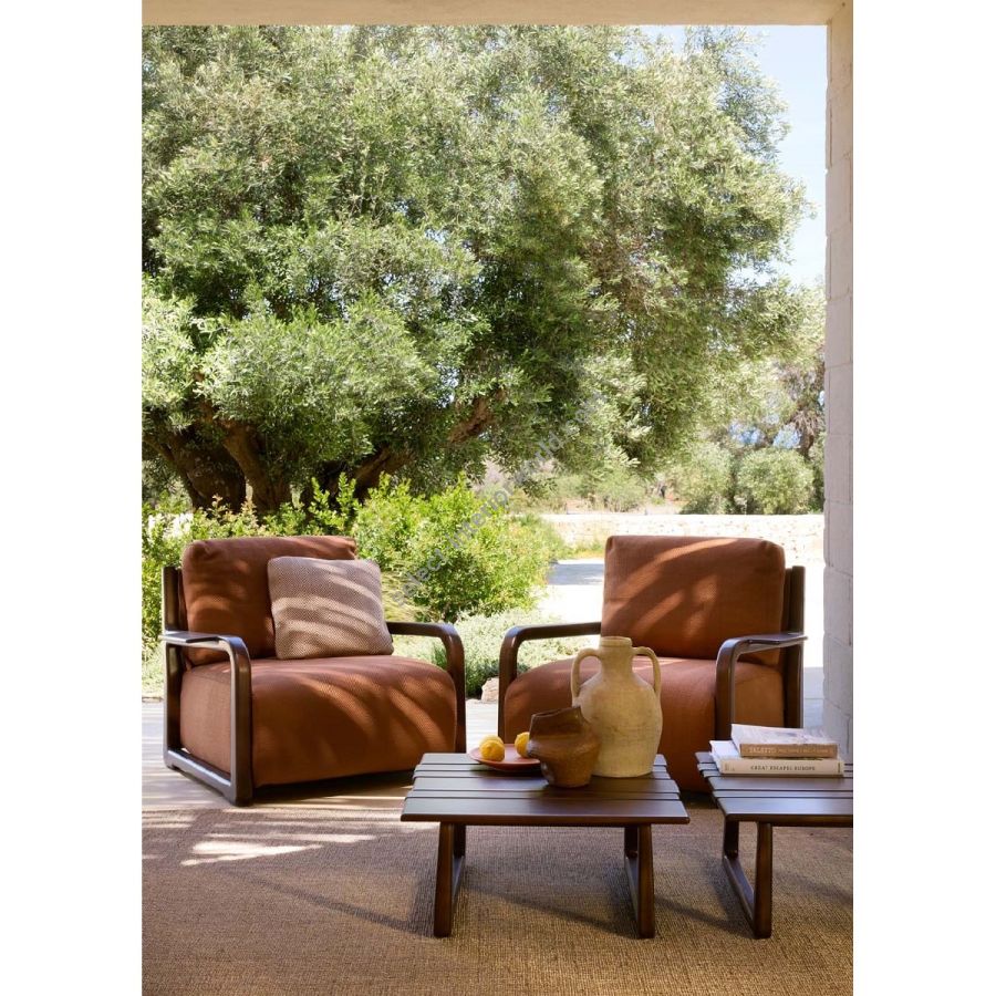 Questa poltrona sfida i limiti dell'imbottito. Da un lavoro approfondito di ricerca su tecniche e materiali, nasce una nuova idea di comfort per l'outdoor, che garantisce il massimo della morbidezza e dell'impermeabiltà in qualsiasi condizione atmosferica.