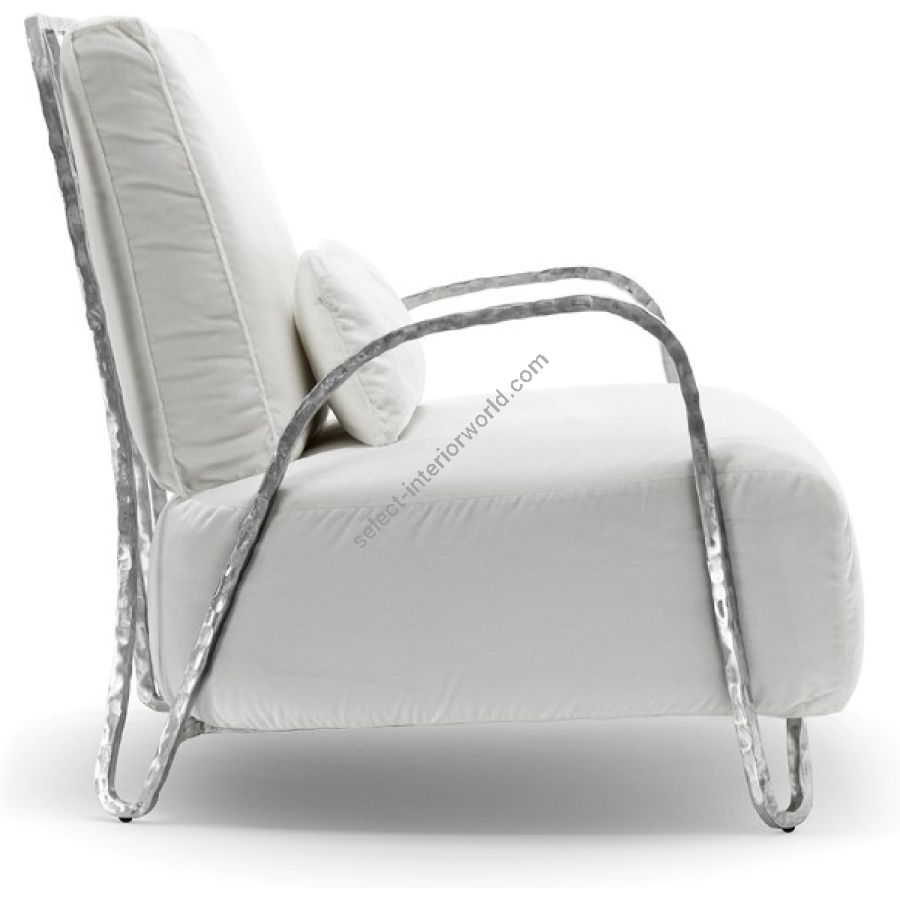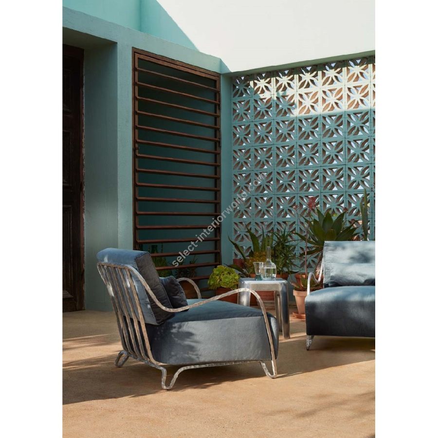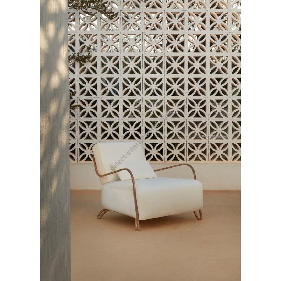 Moonlight Armchair offers outdoor freedom with graceful proportions and sculptural forms. Soft padding meets noble bronze or aerospace aluminum, materials that endure time while unveiling a unique, refined character shaped by craftsmanship.