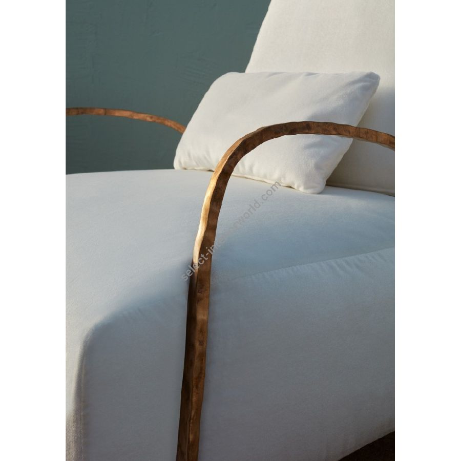 Moonlight Armchair, crafted in bronze or anticorodal aluminum, combines strength and lightness for outdoor use. Its slim frame embraces soft padding, while finishes—evolving patina in bronze or corrosion-resistant aluminum—reveal timeless elegance and sculptural beauty.