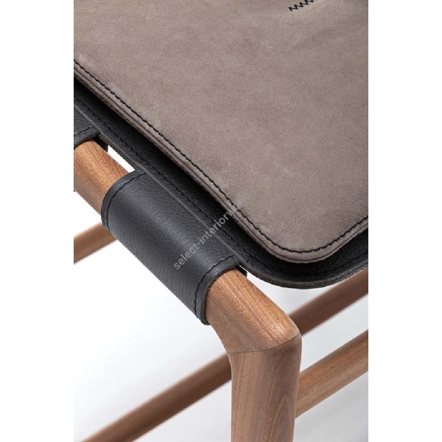 Seduta e schienale sono in vera pelle trattata per esterni, per garantire massima resistenza e pregiata eleganza anche in tutti gli ambienti.
