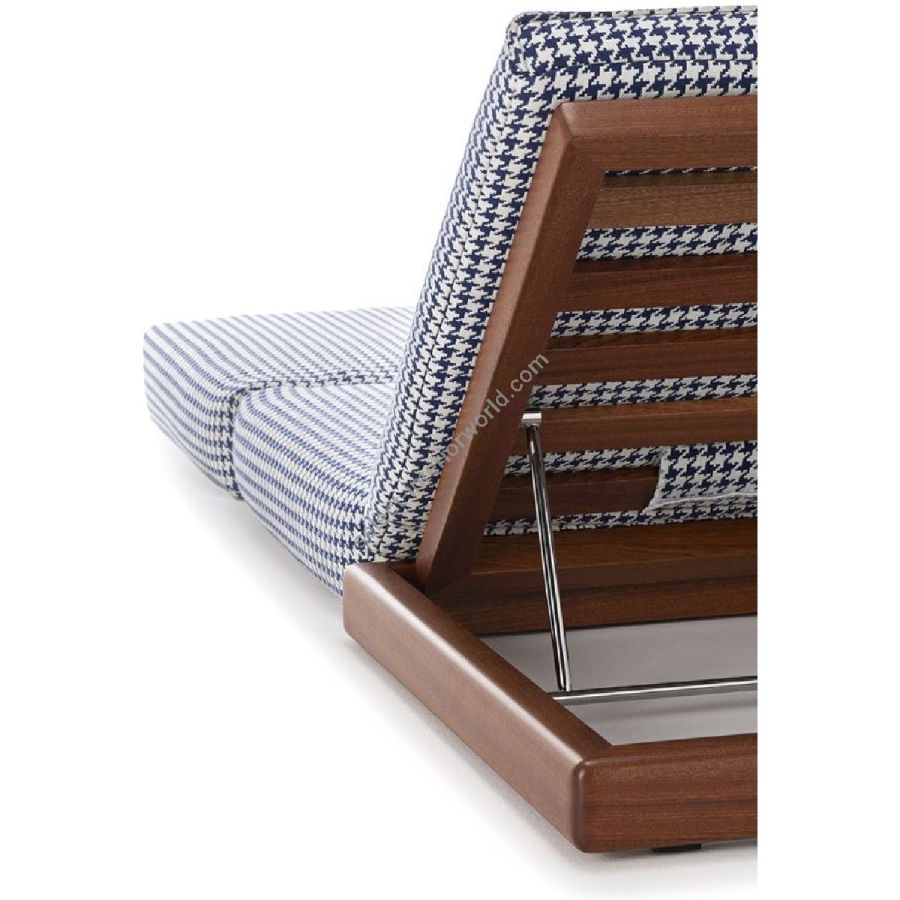 La struttura levigata in mogano Sapelli valorizza le differenze dei diversi elementi. Le finiture del legno si sposano in modo pregevole con la soffice consistenza dell'imbottitura.