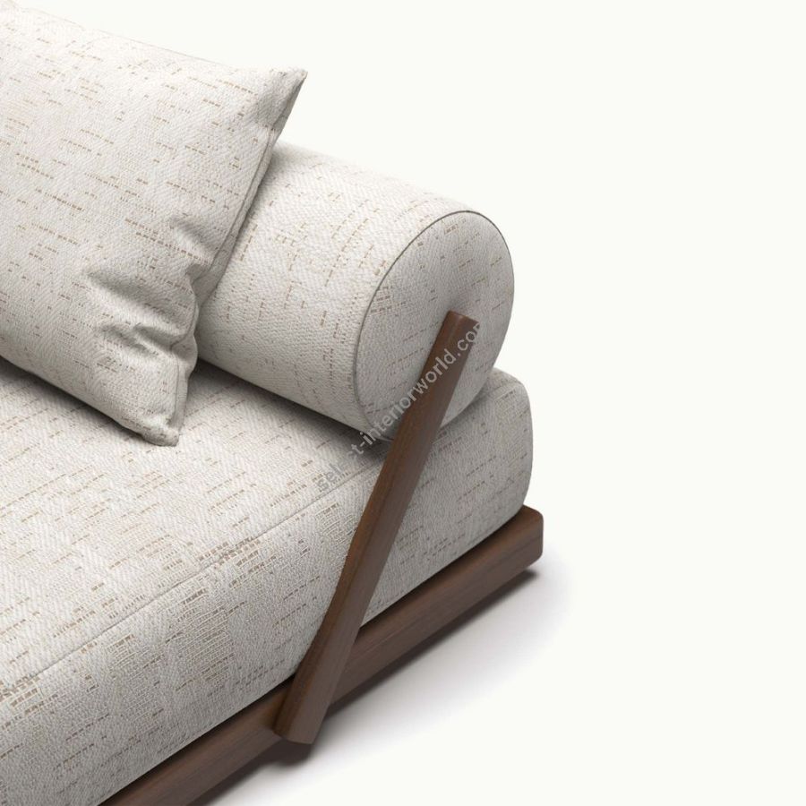 La struttura levigata in mogano Sapelli valorizza le differenze dei diversi elementi. Le finiture del legno si sposano in modo pregevole con la soffice consistenza dell'imbottitura.