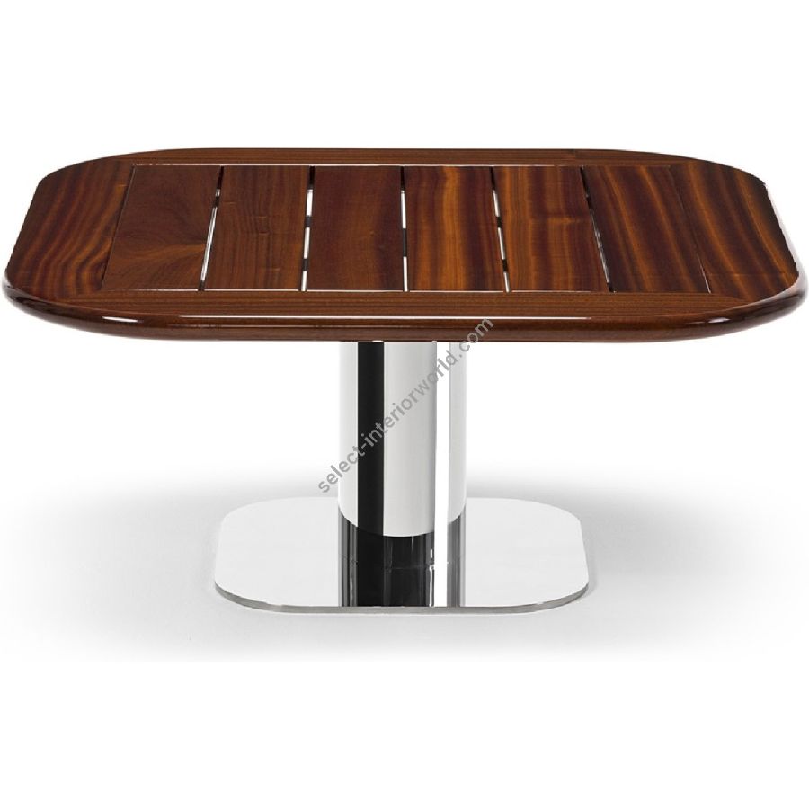 Un coffee table che celebra l’eleganza senza tempo del legno di mogano, lavorato con maestria e rifinito a mano per esaltarne la profondità e il calore naturale. La base in acciaio inox garantisce stabilità strutturale e resistenza, completando un dialogo armonioso tra materiali nobili e ispirazione marina.