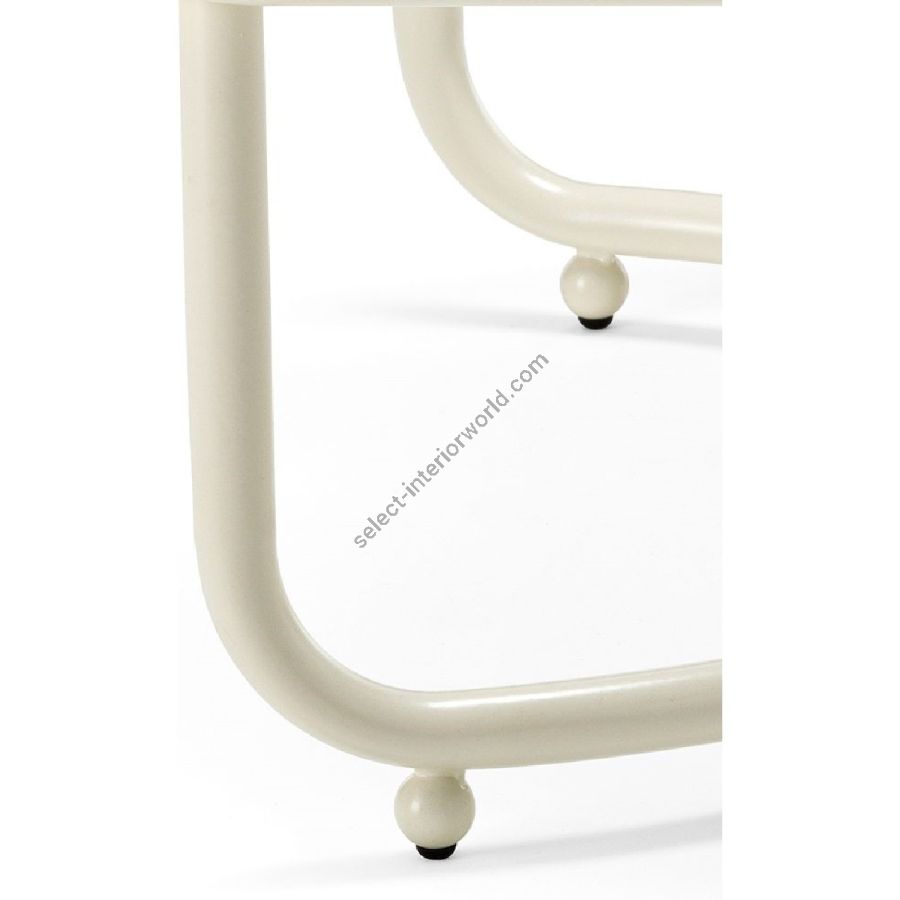 Il telaio di Locus Solus Low Table è composto da tubolari in acciaio inossidabile verniciati. Questa capsule collection propone una struttura metallica Off-White.