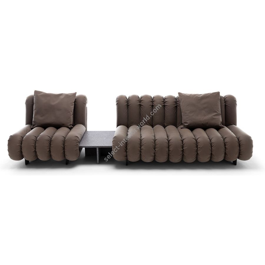 Modulate e affiancate alle sedute della linea Periscopio, le forme geometriche essenziali di questo tavolino permettono di creare numerose configurazioni.