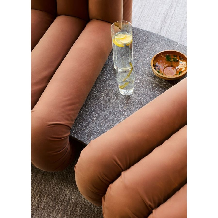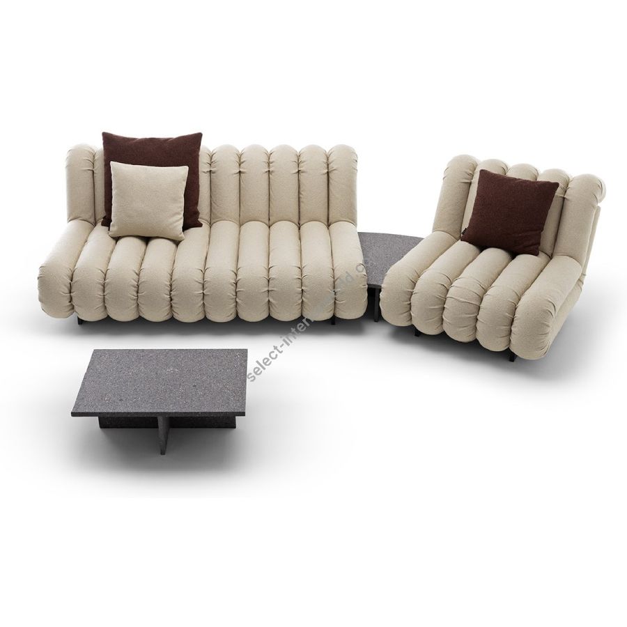 Disponibile anche nella versione Arc Coffee Table, un tavolino dai caratteristici volumi curvi che s'inseriscono con originalità tra gli imbottiti della linea Periscopio.