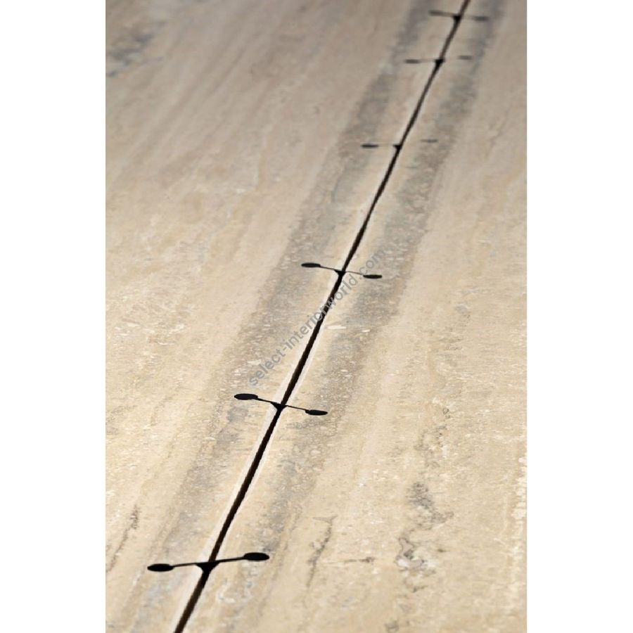 Ispirato alla purezza delle forme architettoniche e al fascino intramontabile dei materiali naturali, questo tavolo incarna un dialogo tra peso e leggerezza, permanenza e precisione. Il piano in travertino richiama le tradizioni scultoree classiche, mentre la geometria essenziale della struttura in acciaio inox 316 verniciato a polvere introduce una tensione contemporanea, quasi minimale. Un elemento che reinterpreta codici senza tempo attraverso uno sguardo moderno, colmando il divario tra passato e presente con chiarezza e forza.