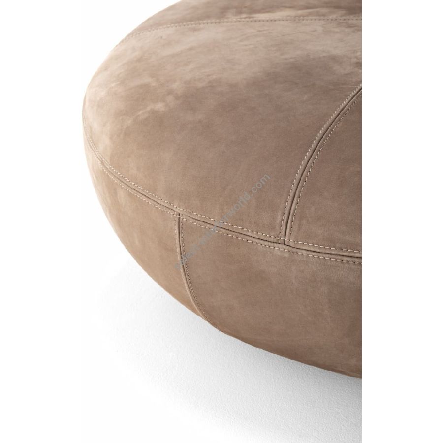 Un elemento d’arredo dalla circonferenza abbondante in grado di caratterizzare con la sua irregolare perfezione ogni ambiente. Le impunture a spicchio sono la firma di uno stile fatto di dettagli. Disponibile in tessuto e pelle per outdoor.