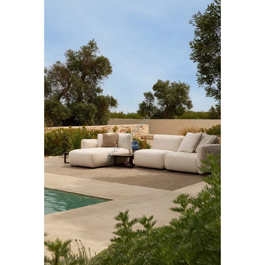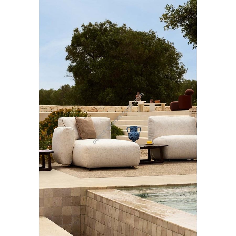 Soffice e avvolgente, questo divano modulare sfida i limiti dell'imbottito. Da un lavoro approfondito di ricerca su tecniche e materiali, nasce una nuova idea di comfort per l'outdoor, che garantisce il massimo della morbidezza e dell'impermeabiltà in qualsiasi condizione atmosferica.