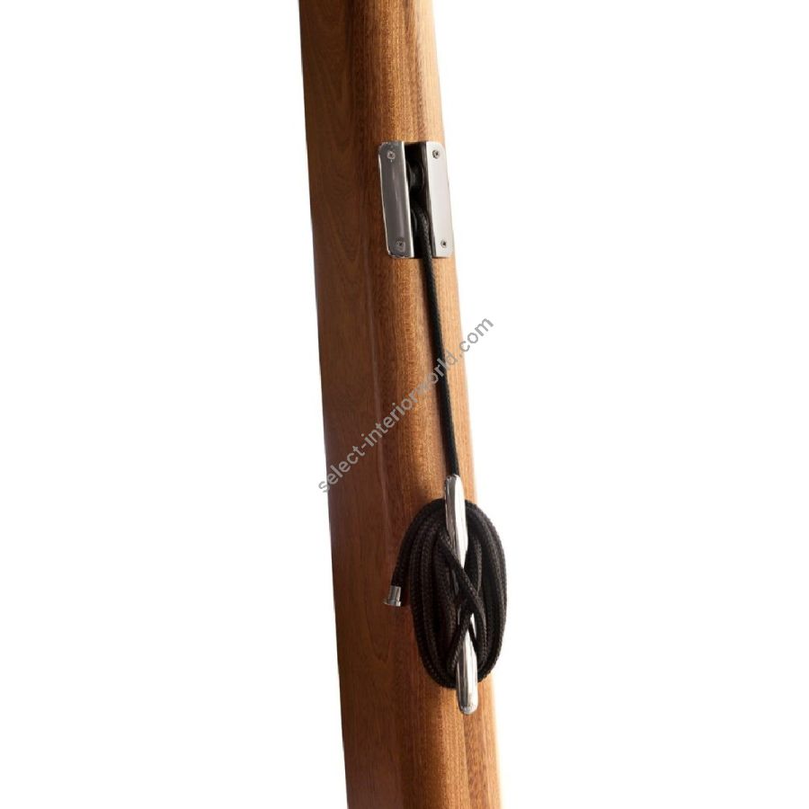 Le applicazioni nautiche ispirano le giunzioni che collegano le tende agli architettonici piloni in legno, rendendole al tempo stesso un elemento estetico e funzionale unico.