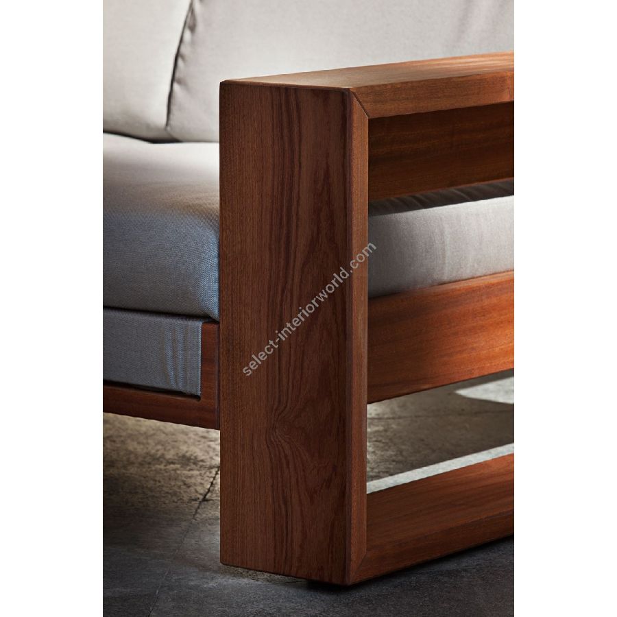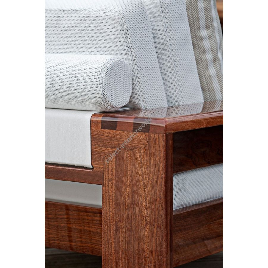 The Bellagio Sofa embodies the fusion of technology and elegance. Defined by strict geometries and Sapelli mahogany structures upholstered in nautical fabrics, it offers timeless strength and style. Available in all sample card colors, it adapts to every environment with majesty.