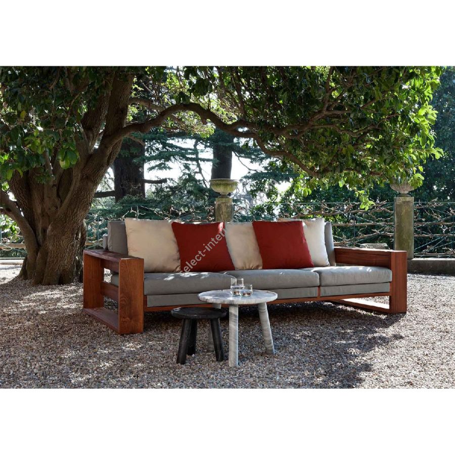The Bellagio Sofa is a tribute to majestic design. Sapelli mahogany closed-cell structures meet nautical fabrics in customizable colors. Between rigor and refinement, it gives spaces a strong identity and a unique balance of durability and elegance.