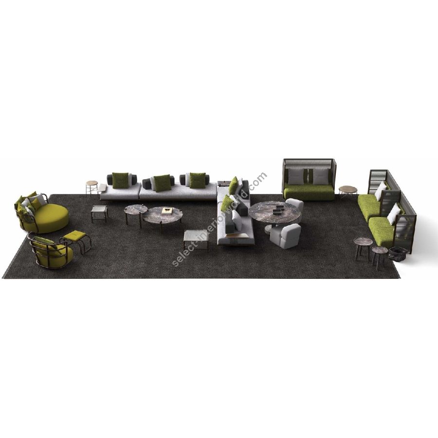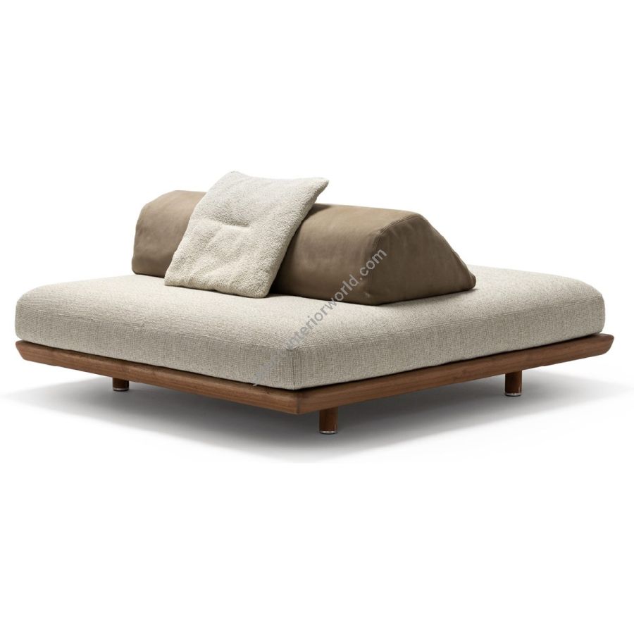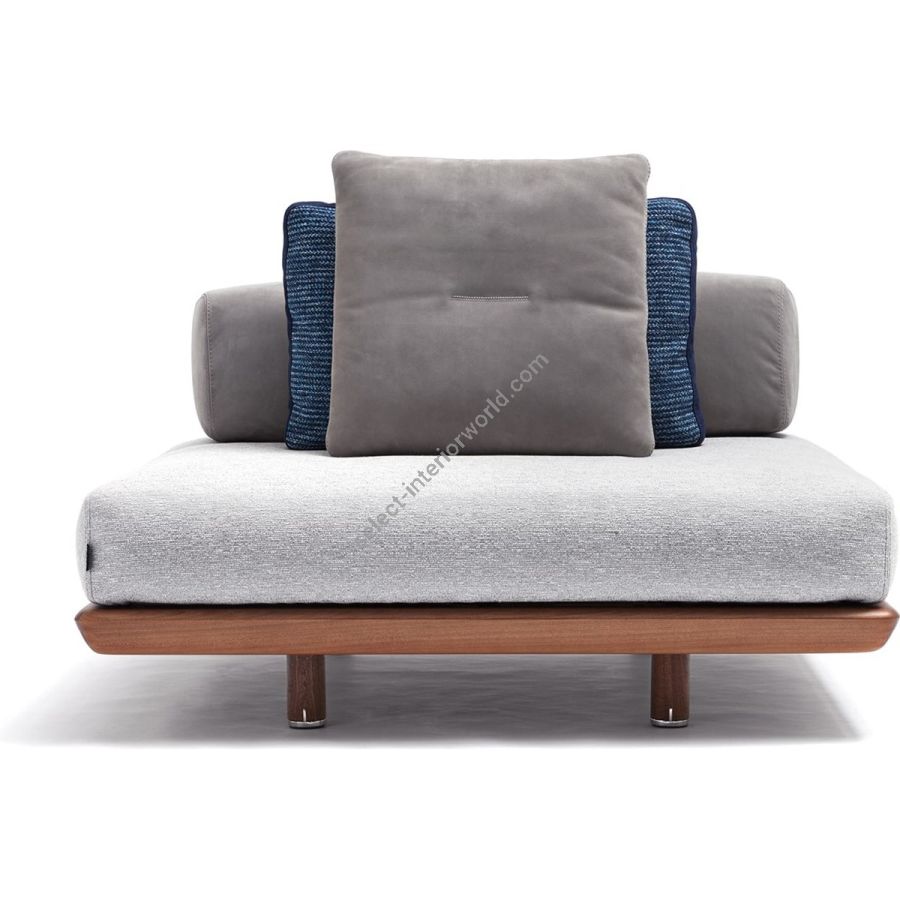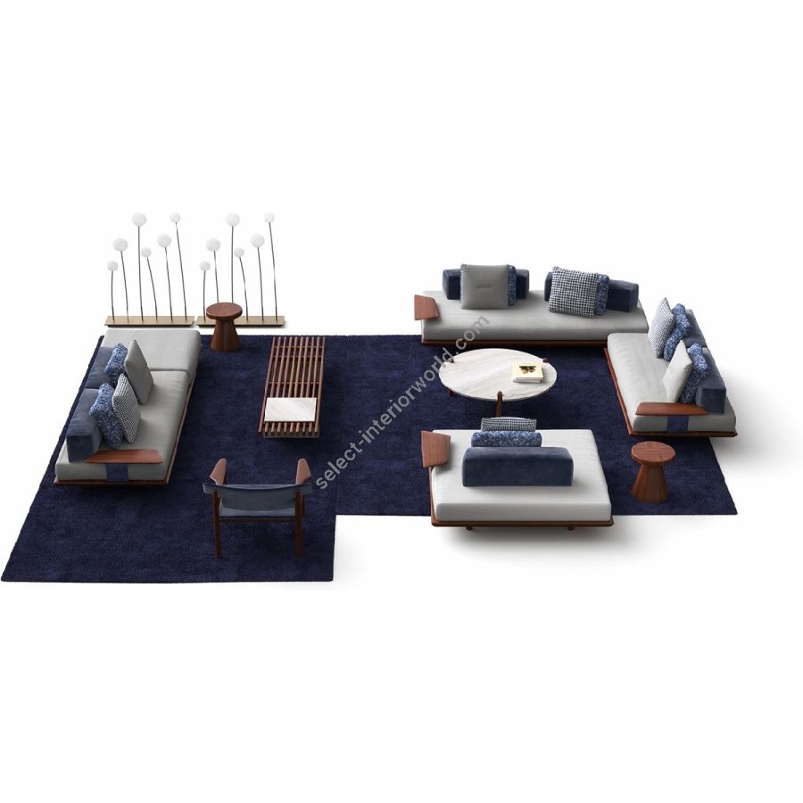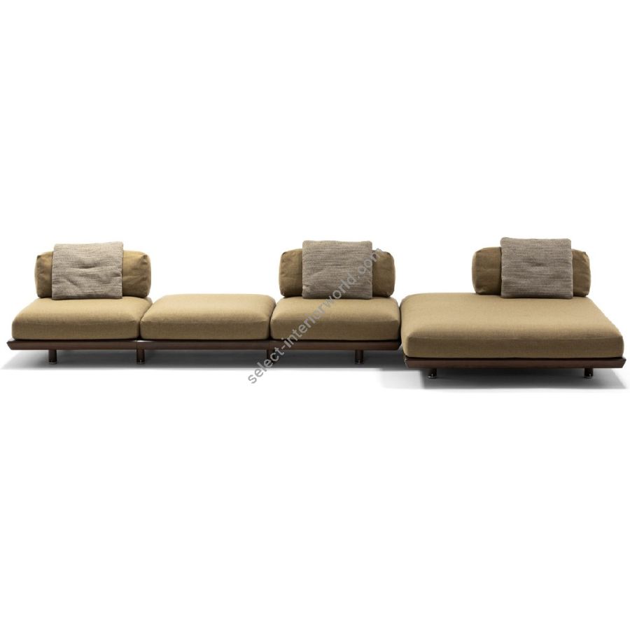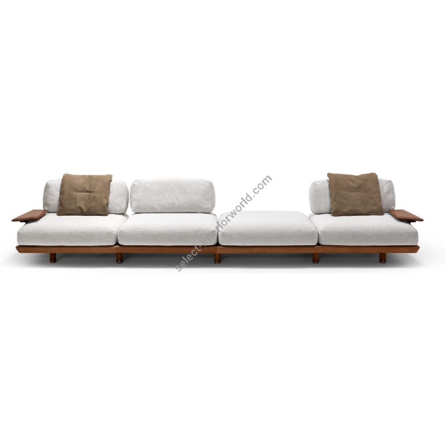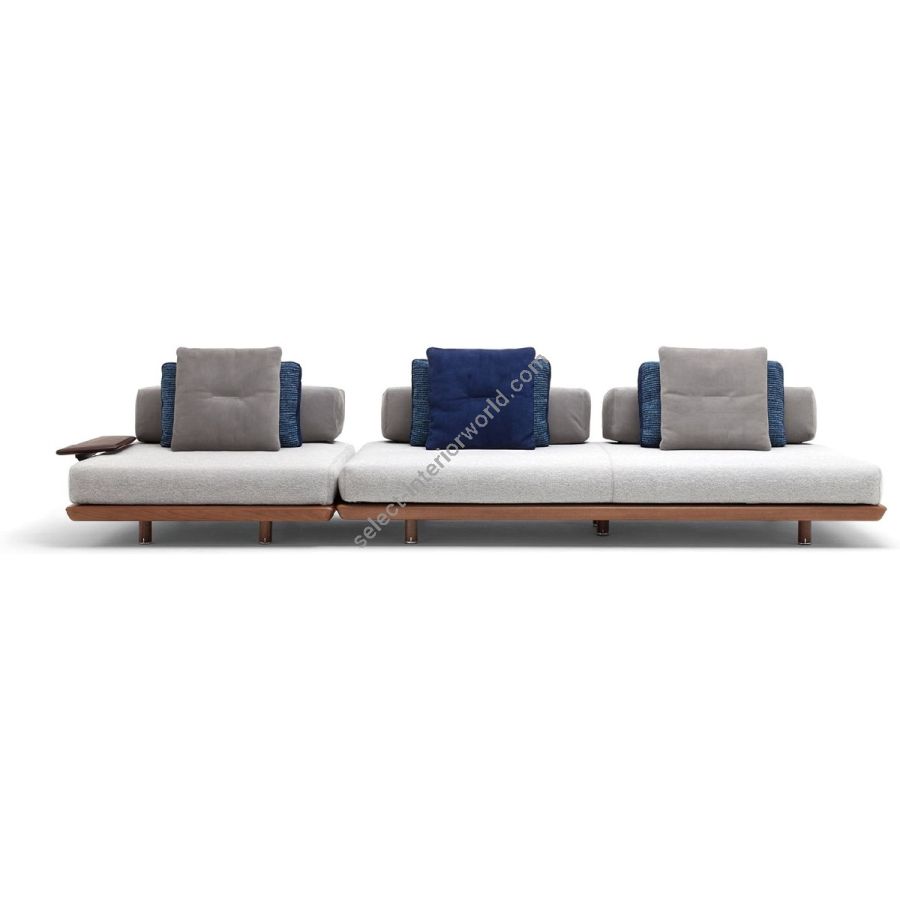 The Caprera Sofa is a modular system that transforms outdoor spaces with infinite compositions. Sapelli mahogany meets soft cushions in a design tailored to personal desires. Move, rotate, or combine poufs, islands, and backrests to create new landscapes of comfort and timeless elegance.