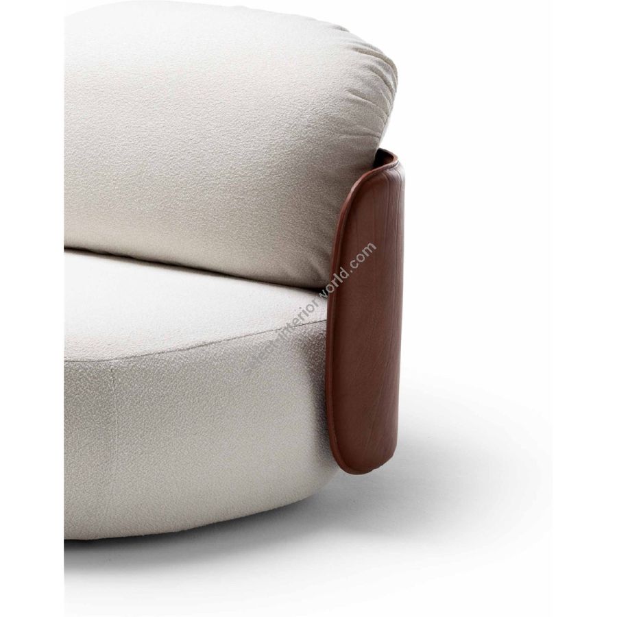 Compact yet cozy, the Mochi Sofa brings playful sophistication outdoors. The leather backrest supports soft cushions, offering comfort in small spaces. Durable and weather-resistant, it is ideal for terraces and yachts, merging elegance with functional design.