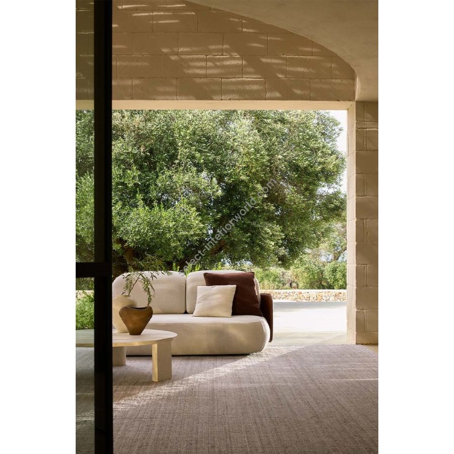 The Mochi Sofa, inspired by the Japanese treat, combines softness and versatility in generous volumes. Perfect for terraces or yachts, it features a leather backrest embracing plush cushions. Resistant to sun and moisture, it redefines outdoor comfort with playful elegance and refined design.