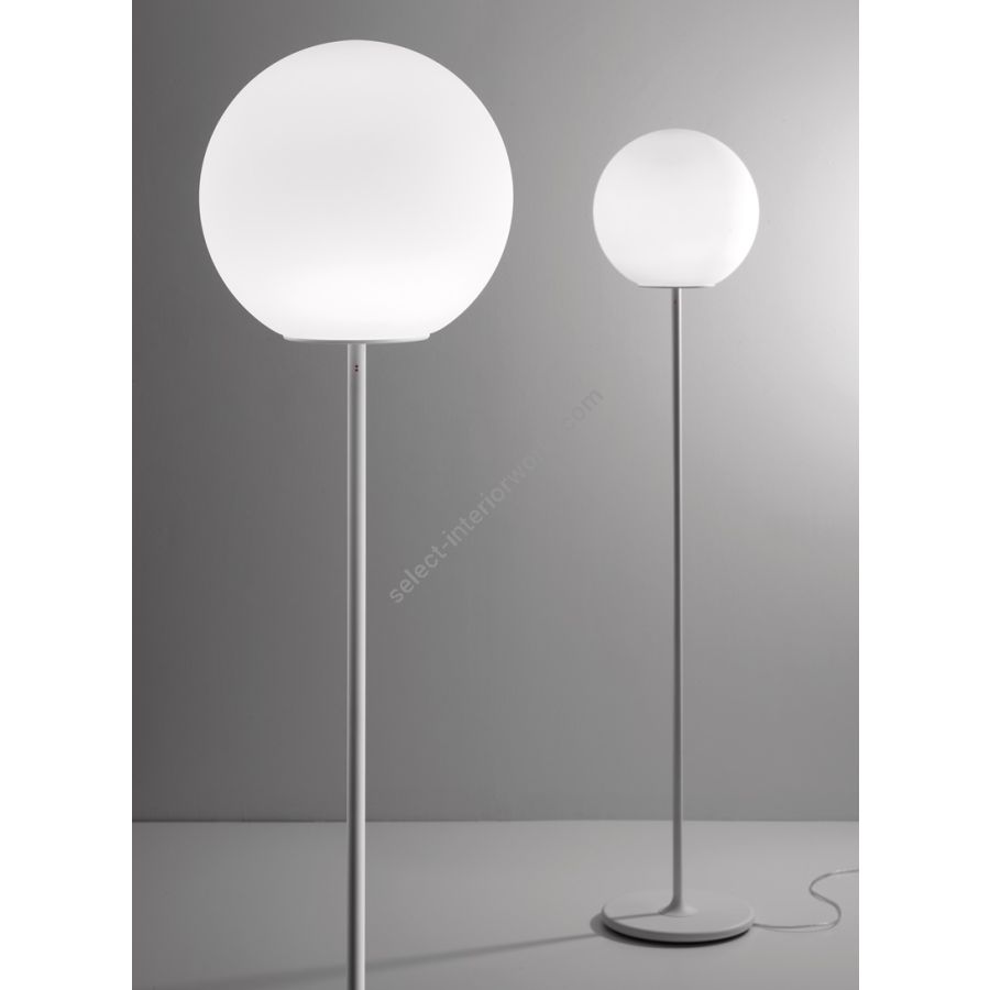 The Lumi Sfera floor lamp diffuser is available in two sizes in white blown glass. This floor lamp is well suited to classic but also modern settings, perfect if placed in the corner of the living room or the bedroom but also in the office. It diffuses a very consistent and efficient light.