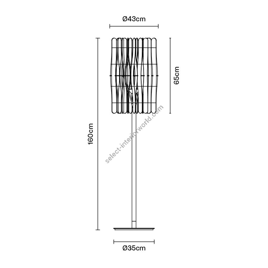 The collection is made up of pendant lamps, one table lamp, various floor lamps and one wall lamp, all for indoor use. The light is diffused through an ornate weave of slats in Ayous, a light-coloured wood found in Africa, while the stem of the floor lamps is in Toulipier, a light-coloured wood from North America. The structure of all the lamp models is in painted metal. The lamp runs on mains power and is suitable for use with fluorescent and LED bulbs.