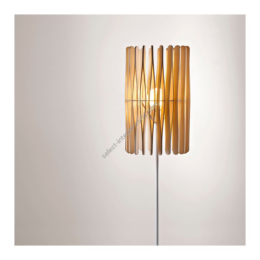 The Stick floor lamp with cylindrical diffuser is a very elegant lamp of great detail. It can be placed in the corner of the living room or lounge, in the bedroom or the study. It creates expressive light effects and a warm and relaxing atmosphere. The lamp is made of wood and aluminum.