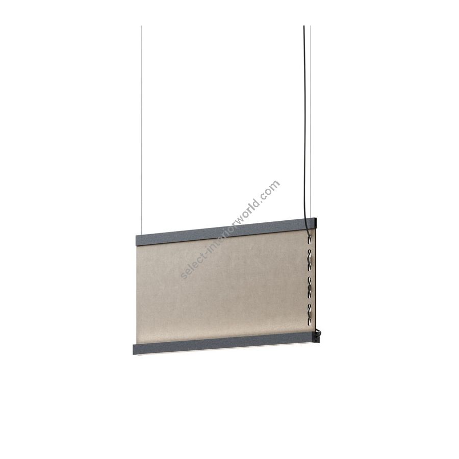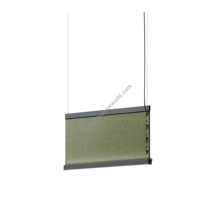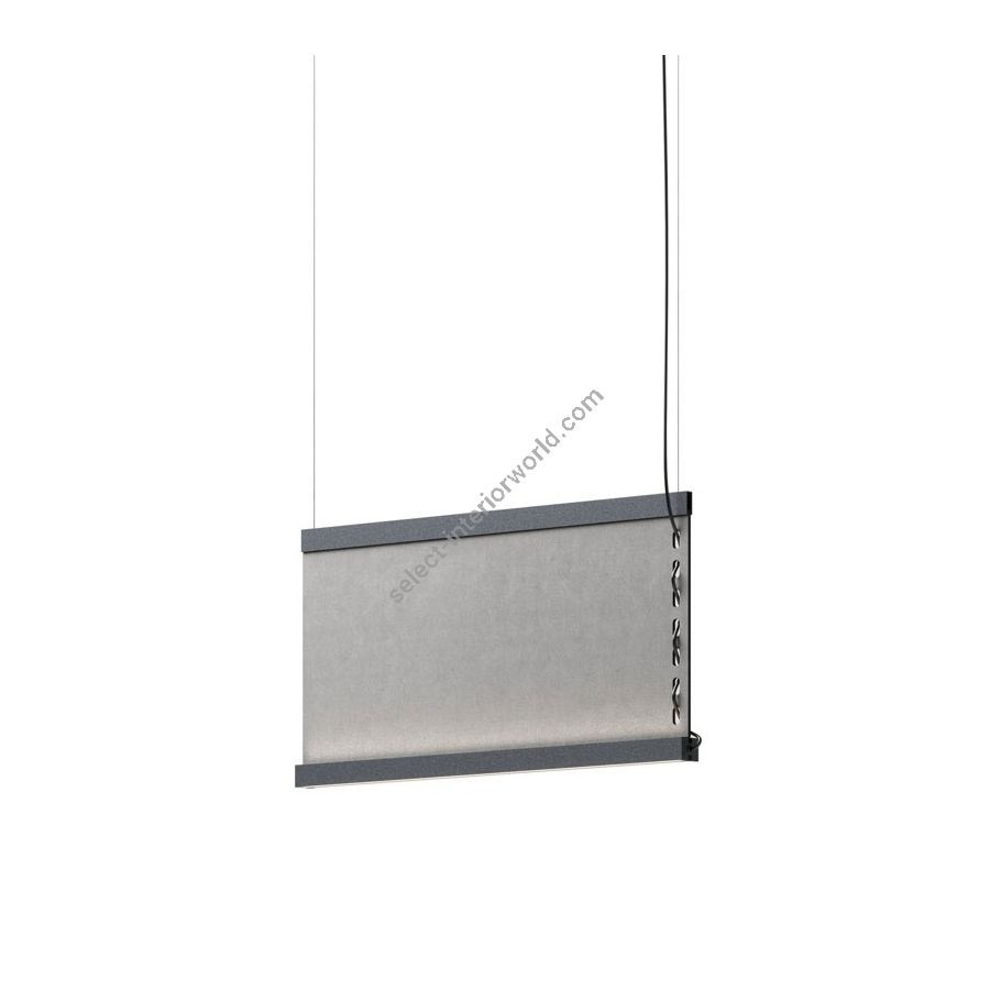 The black anodised aluminium structure has an upper diffuser in opaline PMMA (Polymethylmethacrylate) and a lower diffuser in micro-prismated PMMA. The panels are lined with sound-absorbing fabrics in various colours and are available with customised finishes.