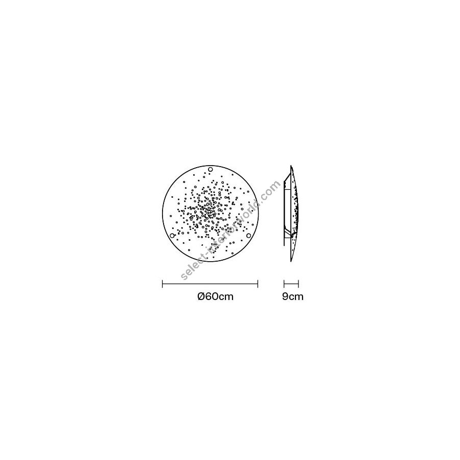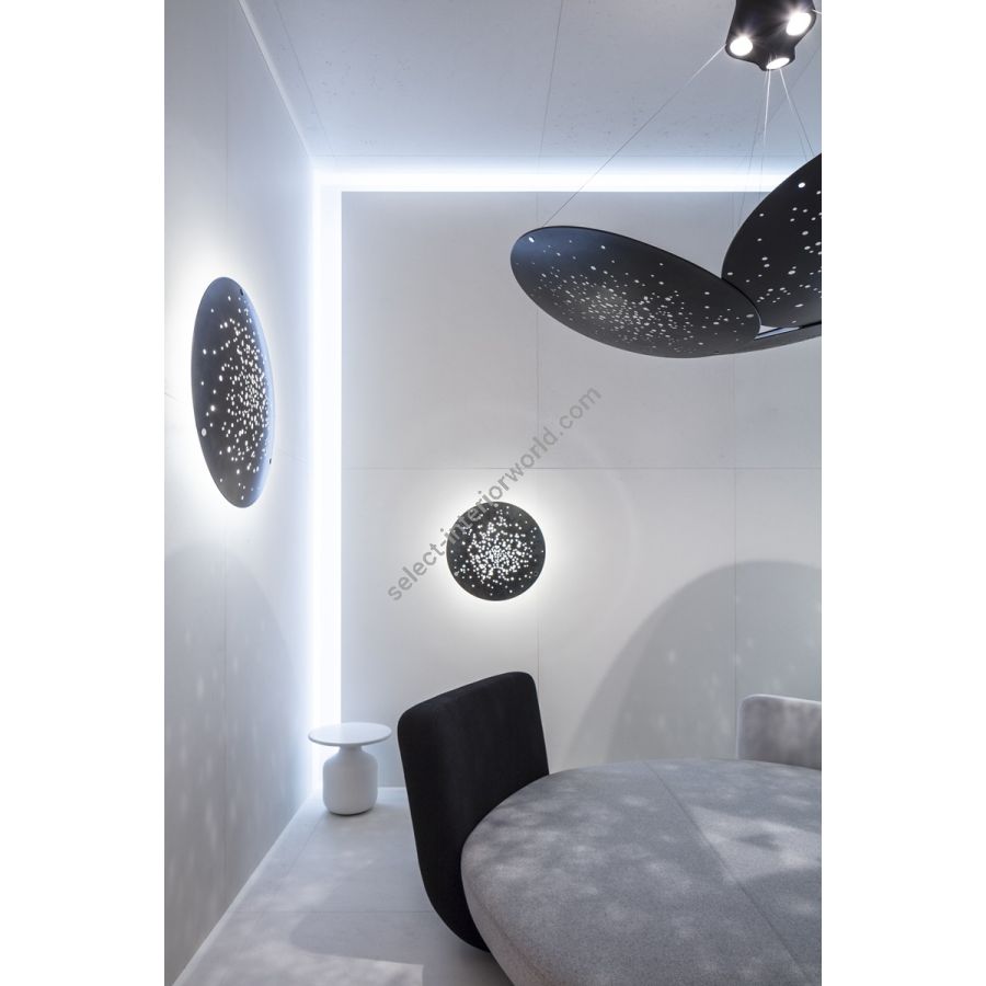 The Lens wall and ceiling lamp is a very decorative, impressive object. The LED light is diffused on the wall creating spectacular effects. Two sizes are available with three fashionable finishes. The lamp is suitable for private environments although can also give character to working areas or public places.