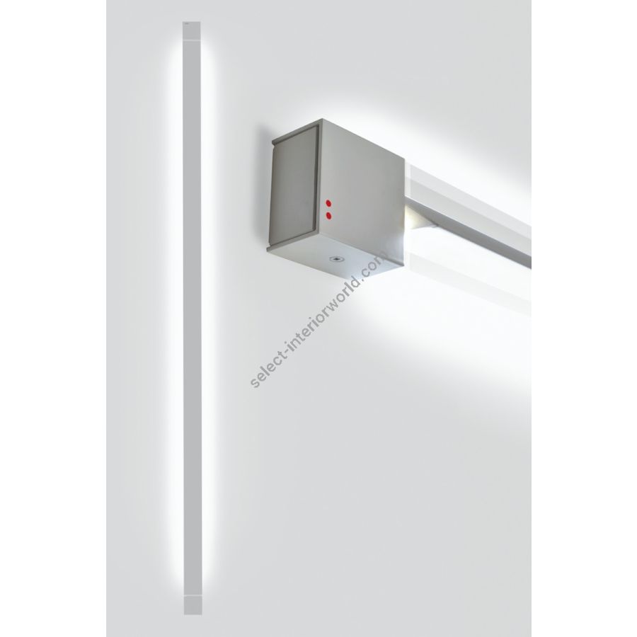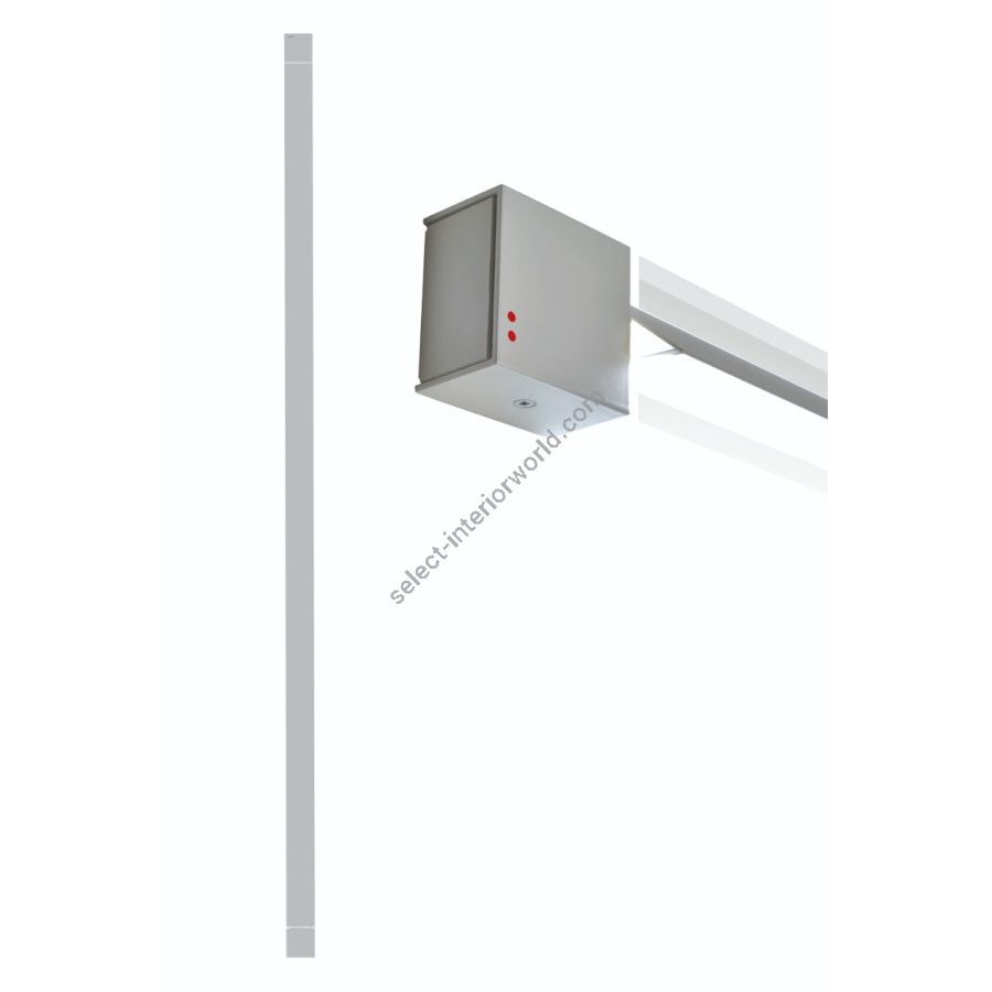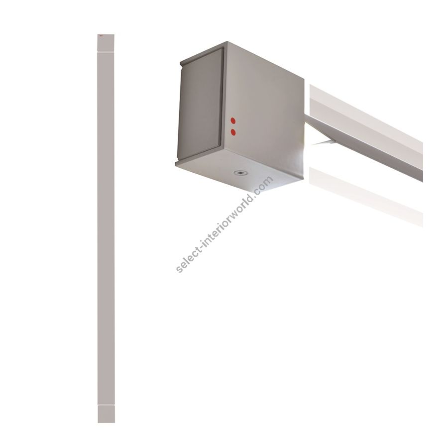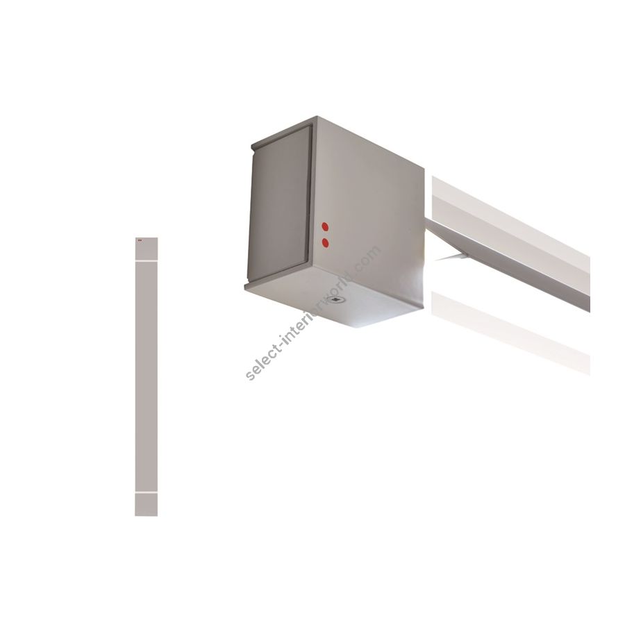 The Pivot collection is made up of a floor lamp, three wall/ceiling appliques in various sizes, plus one hanging lamp. All lengths can be customized upon request. Designed for indoor use, Pivot collection lamps are available in white, dark grey or light grey coated aluminum or in anodized bronze. Two accessories, in anodized aluminum and anodized bronze, now make it possible to arrange two or three hanging fixtures in a series. For the floor lamp, which has a built-in dimmer switch, and for the hanging lamp, the energy voltage is LED, while for the wall/ceiling lamp, the energy voltage is low (24V dc, LED) and comes with a remote power pack.