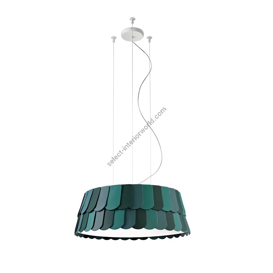 The Roofer hanging lamp has a very refined shape covered with many rubber tiles in different colours (white, green, brown and grey). It has a very playful style, therefore it is recommended to characterize environments that need to improve their style and design.