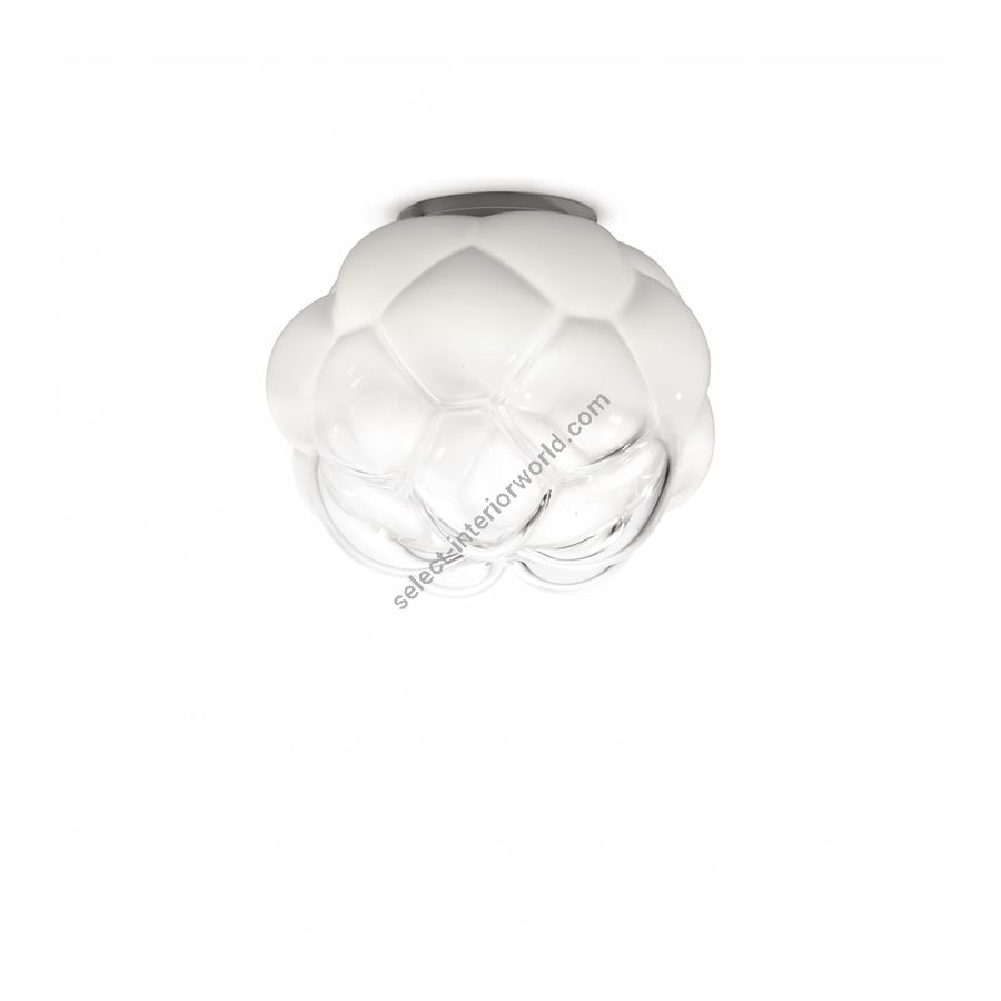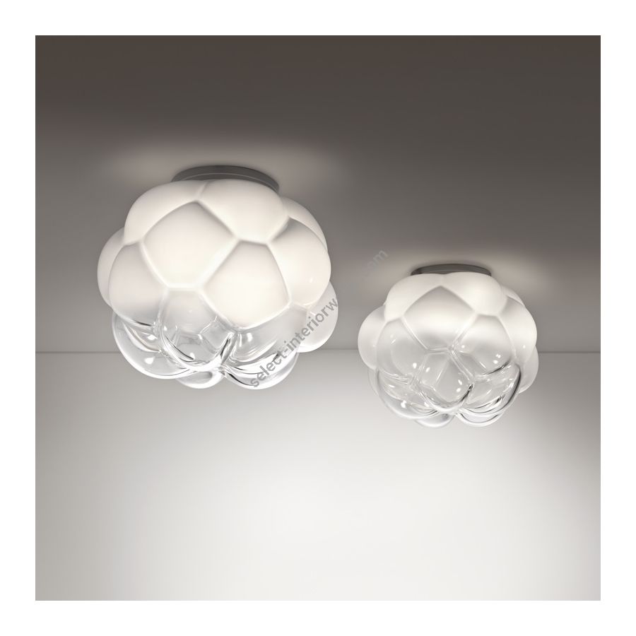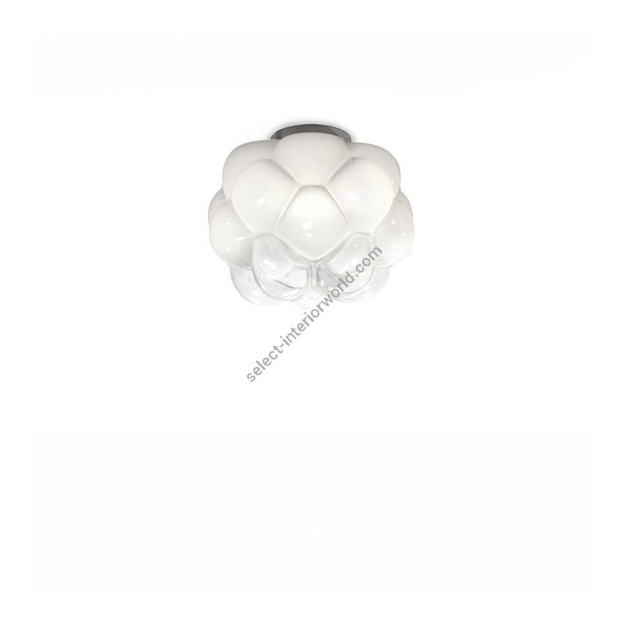 The Cloudy ceiling lamp is very original thanks to the particular shape of the diffuser in white and transparent blown glass. It is perfectly suited to illuminate any room in the home, the kitchen the living room but also the bedrooms. In a professional studio, it gives a touch of sophistication and creativity.