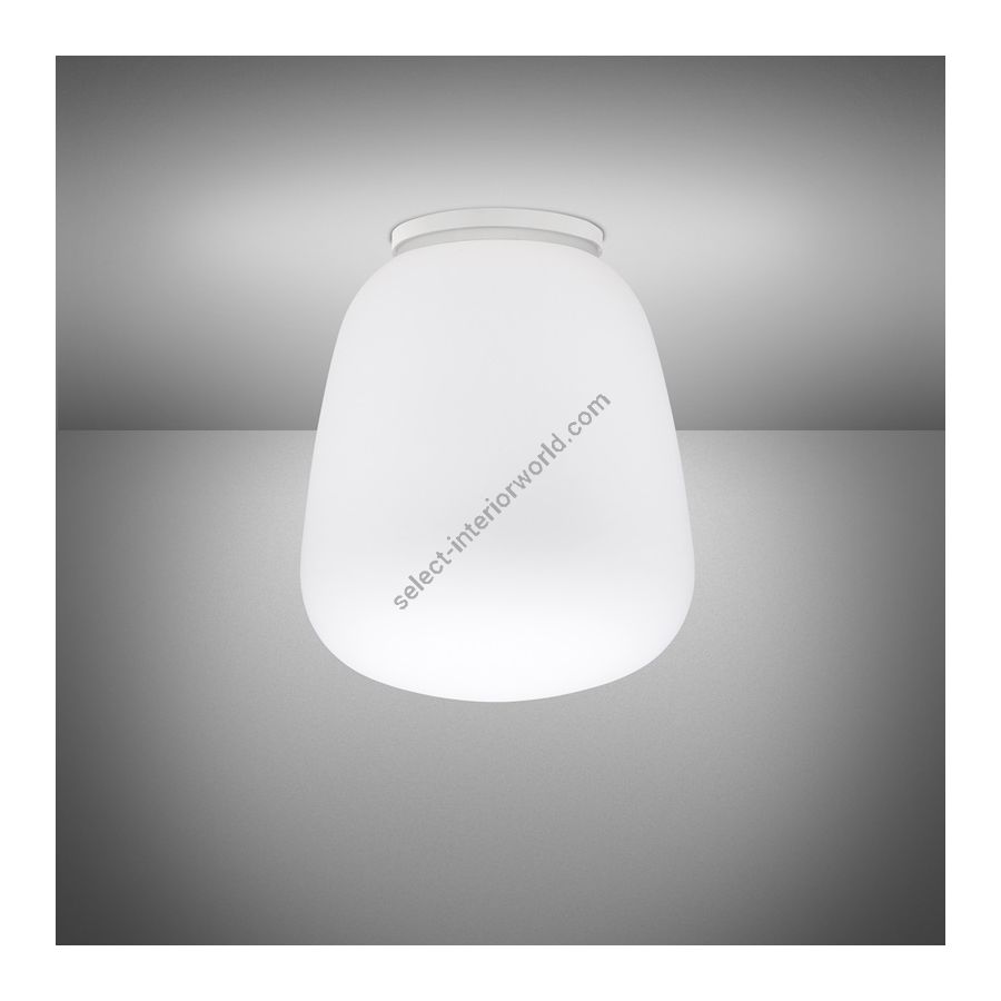 The collection is made up of hanging, table, floor, wall and ceiling lamps in many different shapes and sizes, for indoor use. In addition, the Mycena series makes it possible to create layouts with different glass panels using the special accessory, while the Mochi series also has a range of “falling” hanging lamps. All the diffusers are in white satin-finish blown glass, while the load-bearing structures are in white painted metal or polyester, reinforced with glass fibre. The lamp runs on mains power and is suitable for use with halogen, fluorescent and LED bulbs.