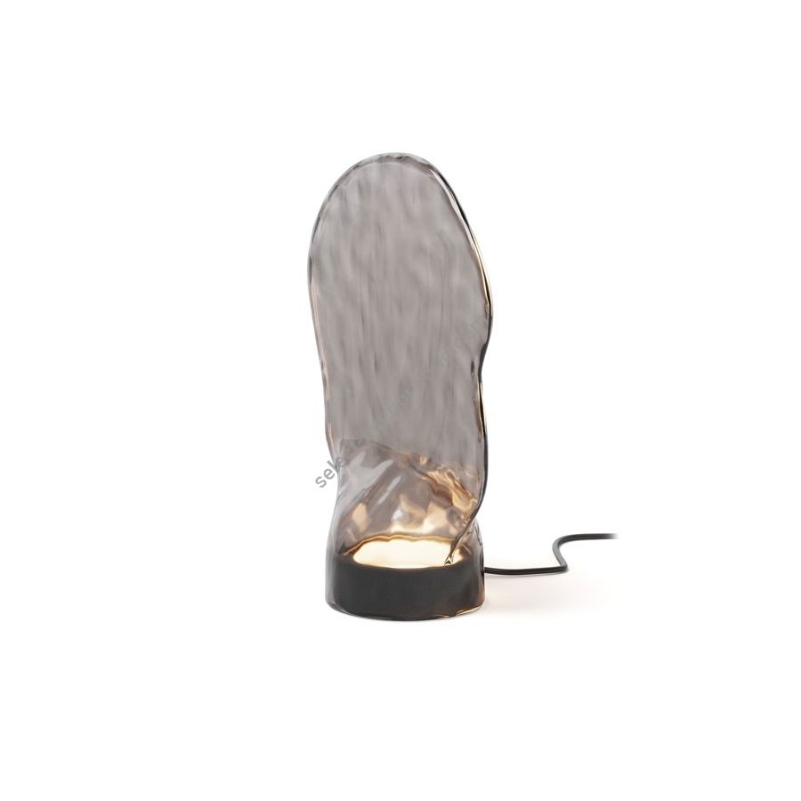 The diffuser is made from hand-blown glass that is then flattened by master glassmakers; the base is in black anodised aluminium, fixed to the glass with three grains that increase its stability and solidity.