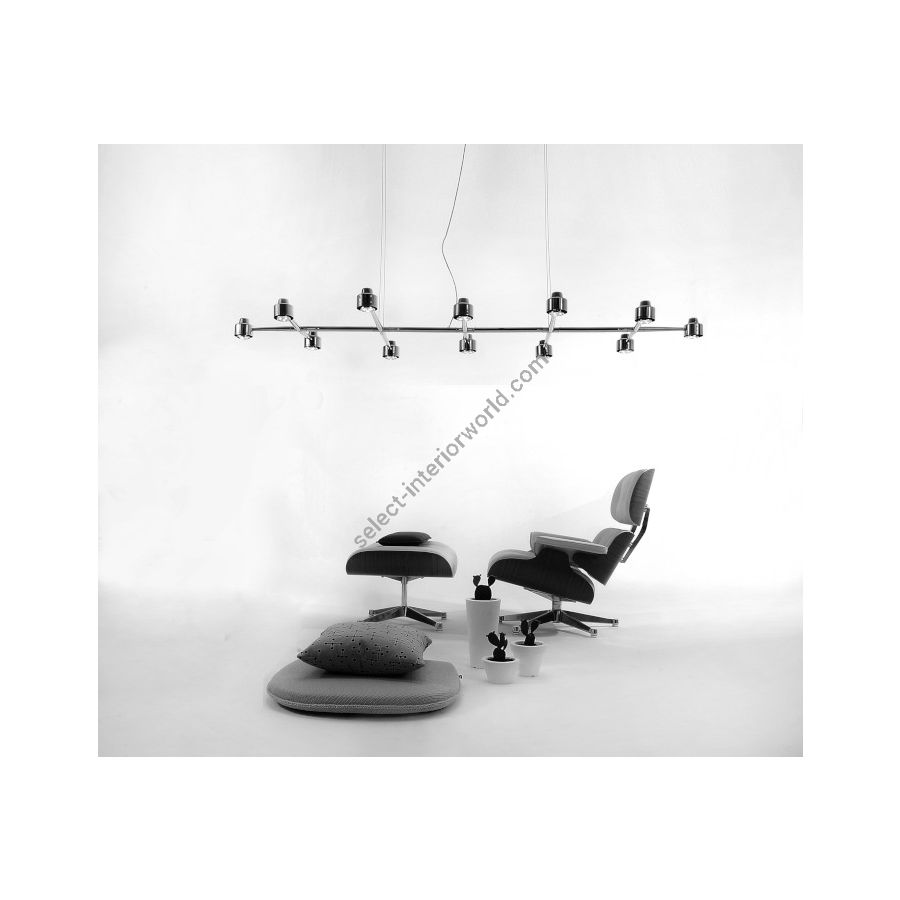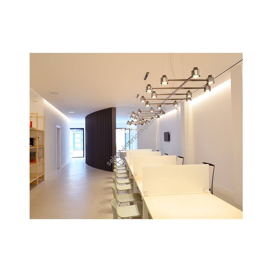 The Spider family of lighting fixtures offers a heightened level of luminosity, generating a more direct and intense illumination. This collection comprises an array of options, featuring designs accommodating a range of six to twelve individual lights. Crafted from a conical metallic tube, the Spider fixtures not only serve a functional purpose but also add a touch of warmth and aesthetic charm to the surrounding environment, making them particularly conducive to enhancing the ambiance of workspaces.