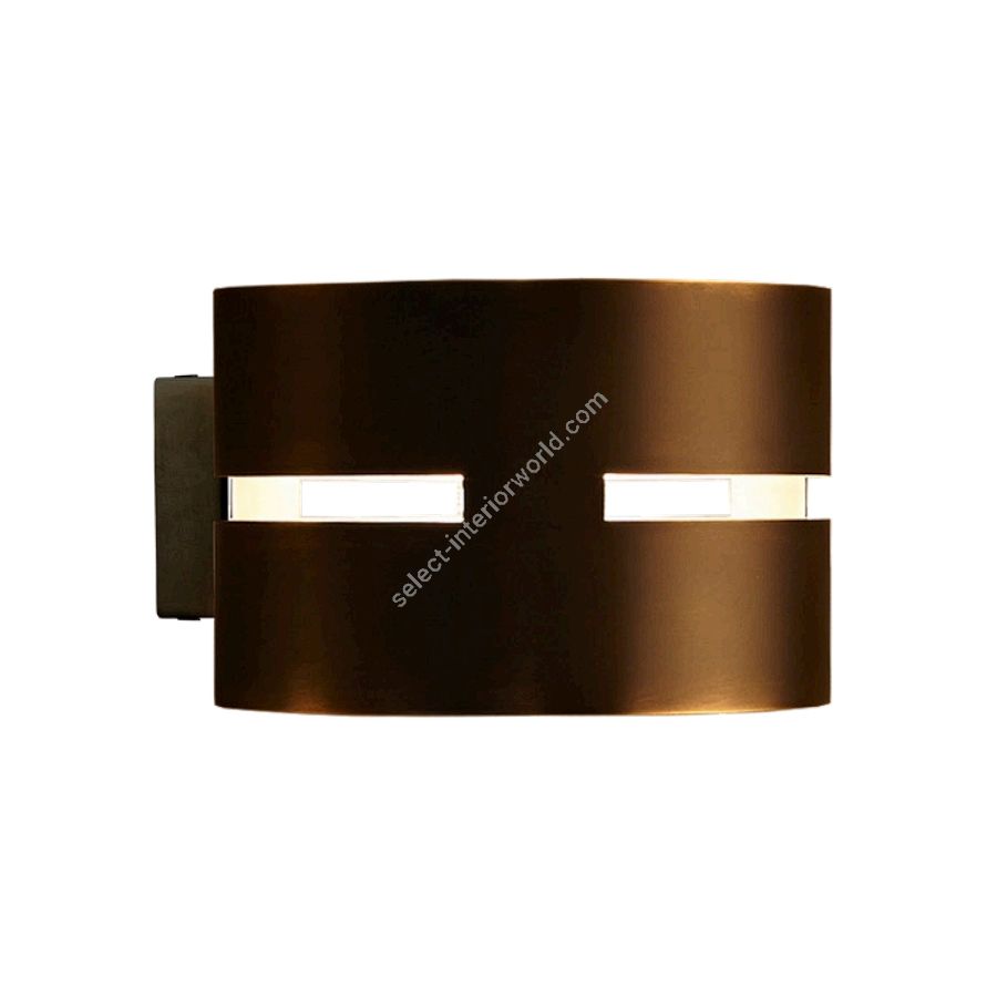 The lighting fixtures available encompass pendant, wall-mounted, and floor lamps, all featuring crafted metal shades. These fixtures boast a sophisticated finish in dark bronze, accentuated by interiors delicately brushed in gold or brass tones.