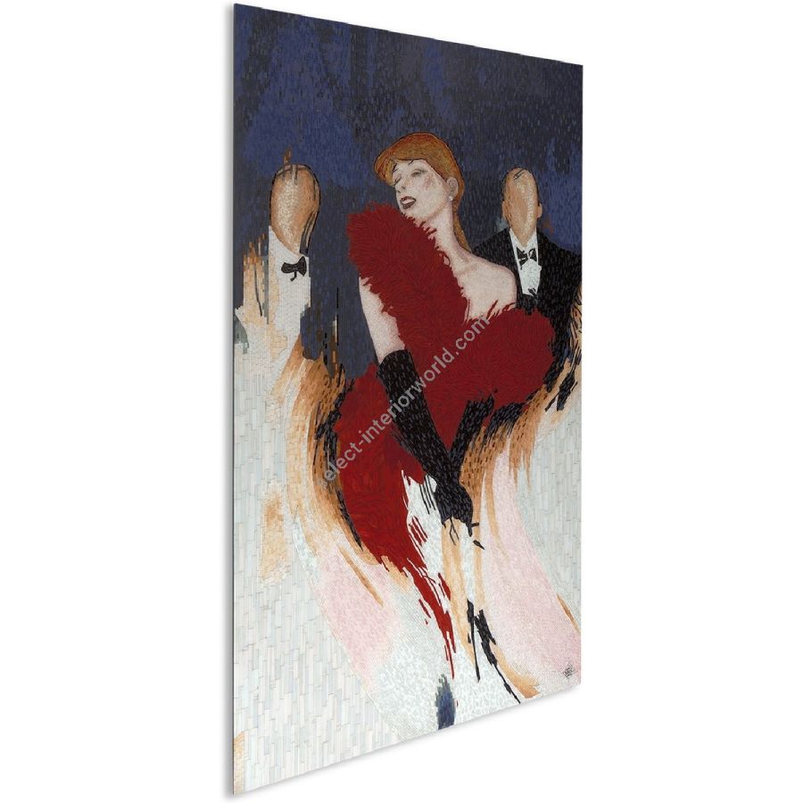 Imagine a jigsaw consisting of thousands of hand-crafted pieces, each cut to size, painted in its own unique color ... that is the magnitude of the work and skill required to create these masterpieces which take over two months to create by a team of six. This mosaic captures the gaiety, passion and energy of Paris’s burlesque nightlife.