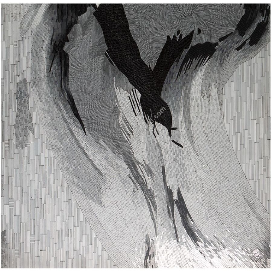 Wall mounted French cleat hanging system. Mosaic inlay of the highest quality, comprising of thousands of hand-cut and individually monochrome glass pieces.
