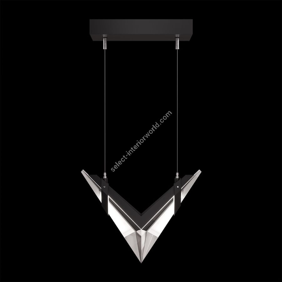 Inspired by the bold geometry of chevron shapes and the sleek lines of modern aircraft, Blade brings a sense of motion and precision to lighting design and merges sleek design with modern functionality. Pendant features cut crystal and integrated LEDs in Standard Black Iron or Champagne finish. Dark Walnut stained wood featured on select items adding warmth to the metal forms.