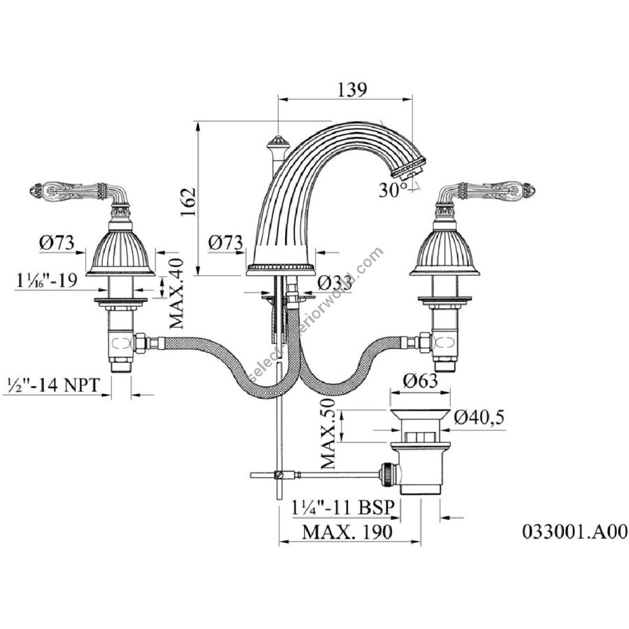Bronces Mestre / Washbasin Fittings / Three holes basin set 033001.A00.00