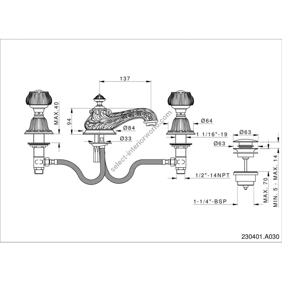 Bronces Mestre / Washbasin Fittings / Three holes basin set with click-clack water waste 230401.A030.50