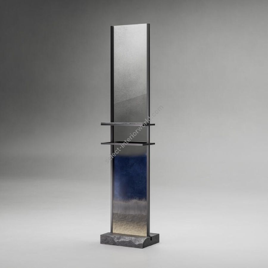 Metal structure with brushed black nickel finish. Basalt marble base and shelf.