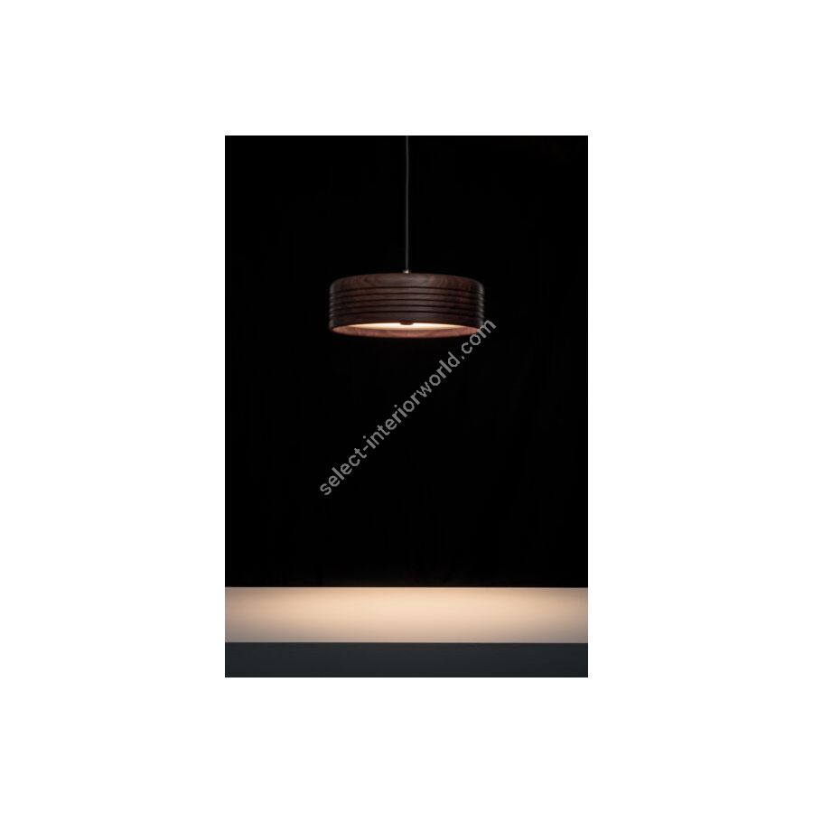 WOOD is a natural suspension lamp spreading warm and cozy vibes. The minimalistic cylindrical shape is enriched by symmetric ripples, highlighting the artisan turning process. Available in oak (raw), American walnut (oiled), and ash (stained black), WOOD is a perfect blend of Scandinavian clarity and organic charm. Defined by the individual grain and annual rings, each piece is as unique as a fingerprint. And the ecological footprint is close to zero: Formagenda plants a tree for each WOOD which is sold.