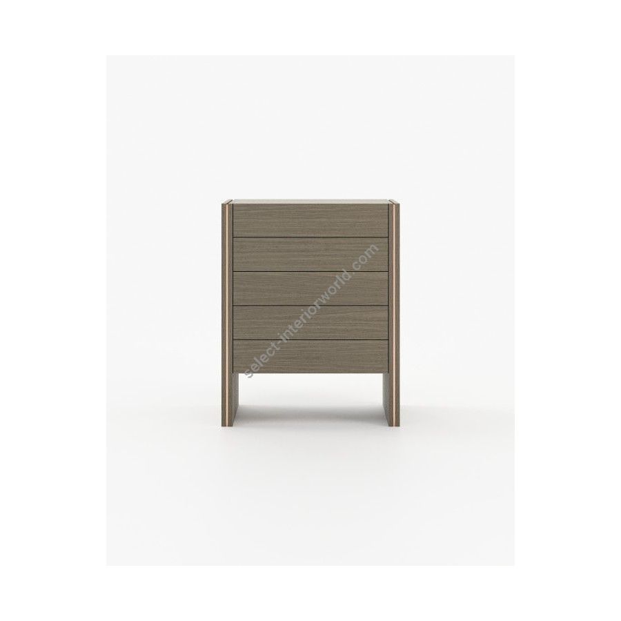 The Mucala tallboy is an embodiment of understated luxury, featuring five drawers and customisable in many materials, fulfilling any storage needs in a bedroom.