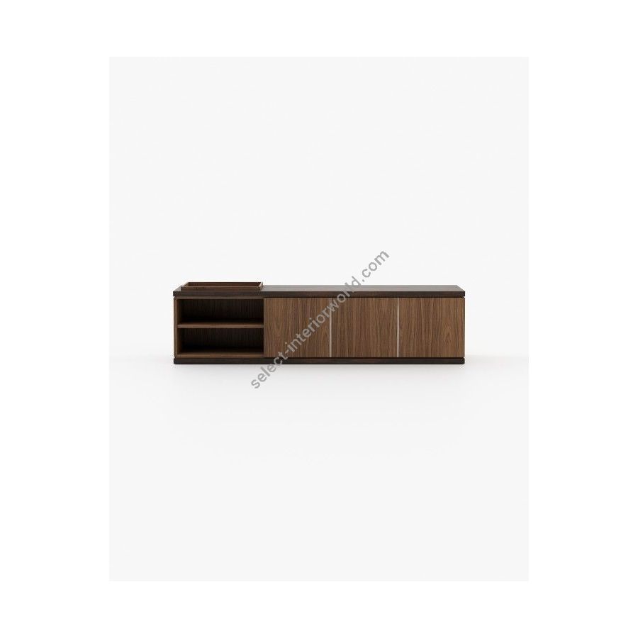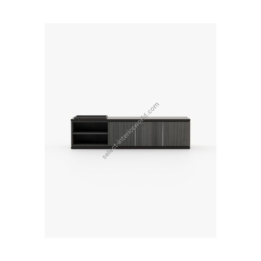 The Lora TV cabinet is a clean-cut and functional piece, perfect for media storage. It features open shelves in the left compartment for easy access to media components, and can be customised with various steel and wooden options.