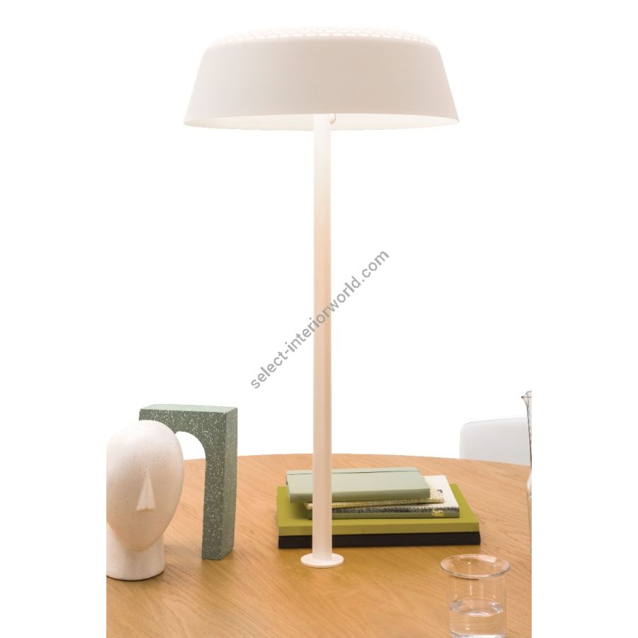 An extension to the Ring pendant is the Ring T1. A table version with a Pin mount or a rectangular base. A timeless design with a minimum of reflecti-on and superb light comfort! Because the LED is cleverly integrated , there is no glare which is ideal for above a desk or communal table. Thanks to the luminaire’s openness it has a fine spread of light. In addition, the even light ensures that there is no hard, unwanted shadowing. The perforations in the steel provide a subtle decoration and at the same time allow the light to pass through. The pattern on the shade is characteristic of the design. Ring is a subdued pendant lamp with unique details and therefore widely applica-ble in various interiors. Available in white and black powder coating and on request in any RAL colour.