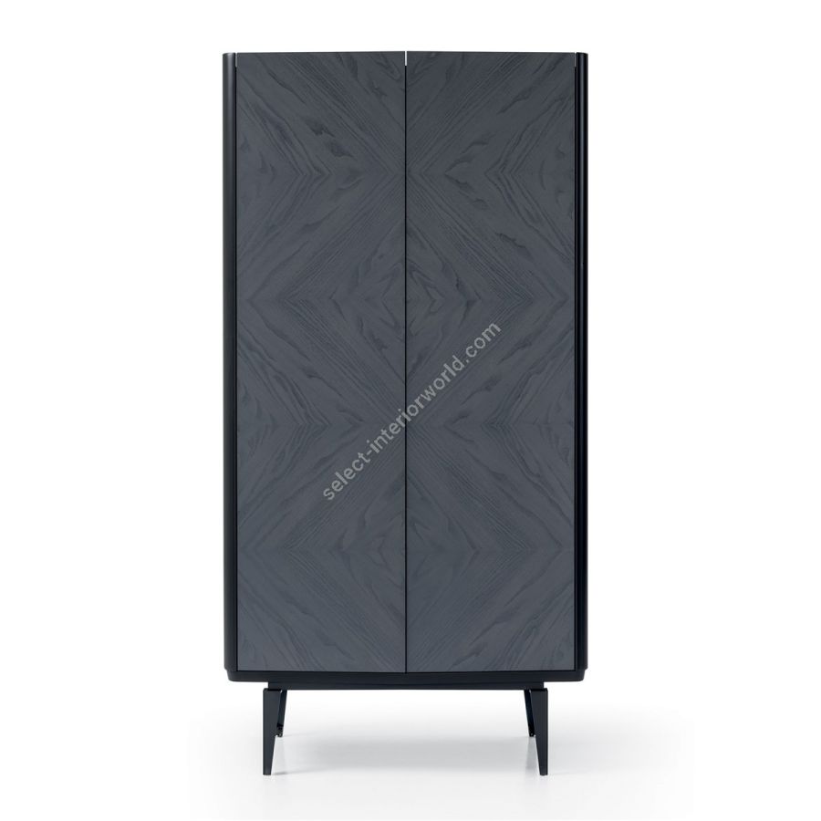Pantographed and lacquered mdf structure. Doors in blockboard, lacquered, decorated or veneered in Caneletto Walnut or in inlaid ash “Shadow” plywood. Iron base and legs with adjustable feet.