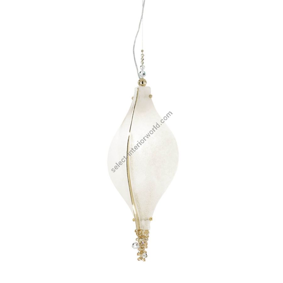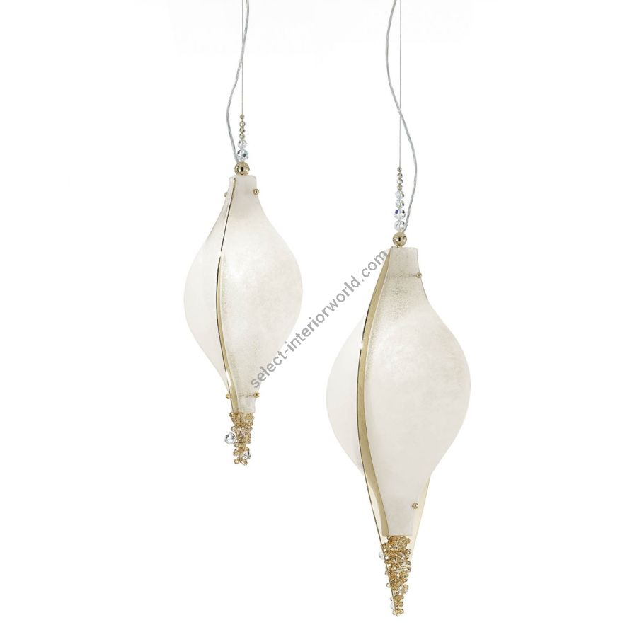 White Murano glass diffusers worked with grit band and wrought effect. The collection is adorned with crystals.