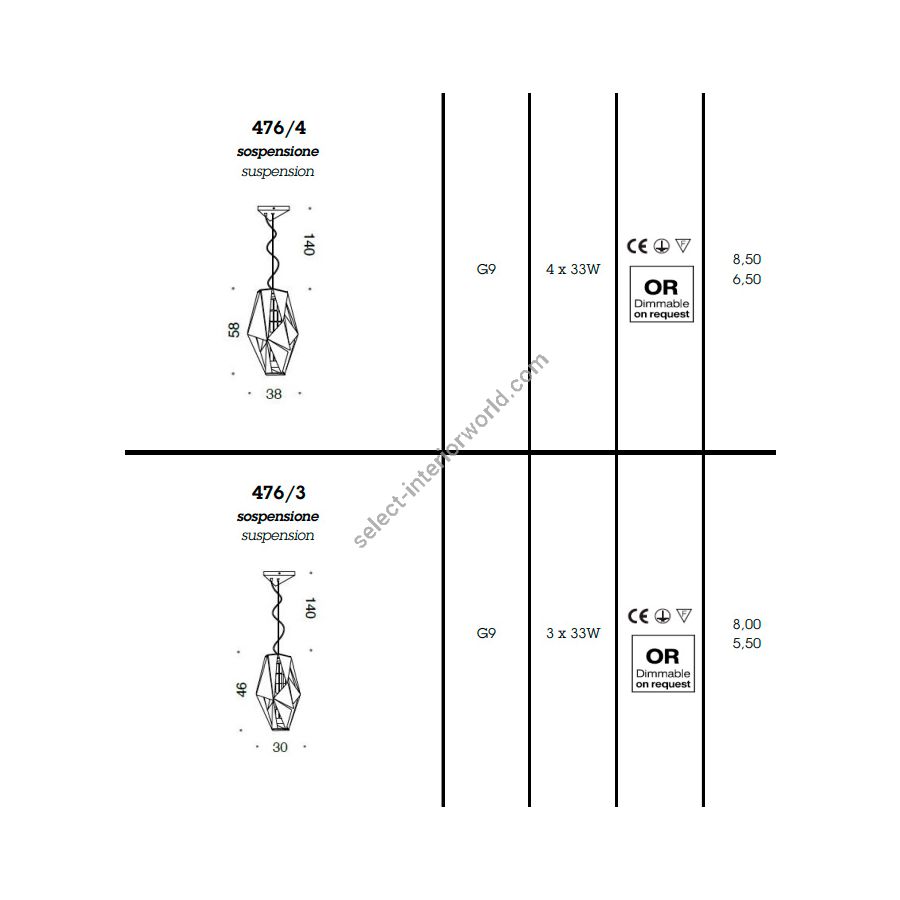 IDL 1987 / Pendants & Suspension Lights / Crystal Rock 476